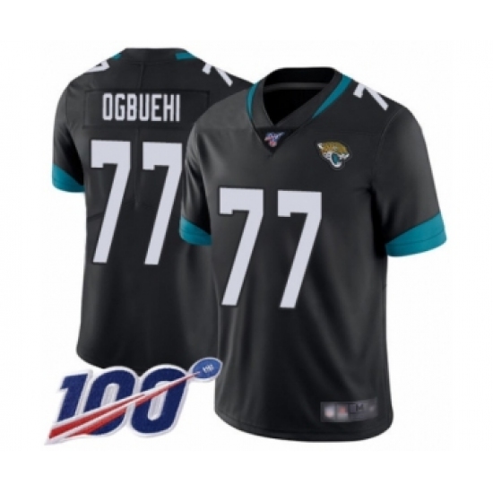>Men's Jacksonville Jaguars #77 Cedric Ogbuehi Black Team Color Vapor Untouchable Limited Player 100th Season Football Jersey