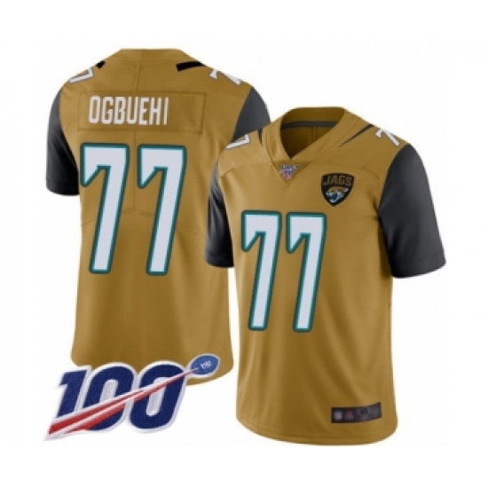 >Men's Jacksonville Jaguars #77 Cedric Ogbuehi Limited Gold Rush Vapor Untouchable 100th Season Football Jersey