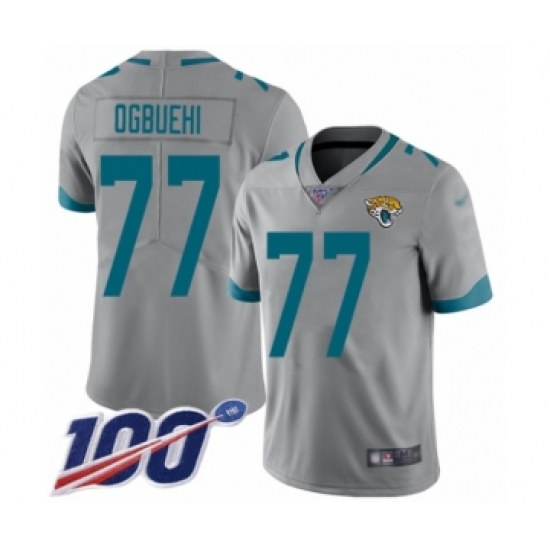 >Men's Jacksonville Jaguars #77 Cedric Ogbuehi Silver Inverted Legend Limited 100th Season Football Jersey