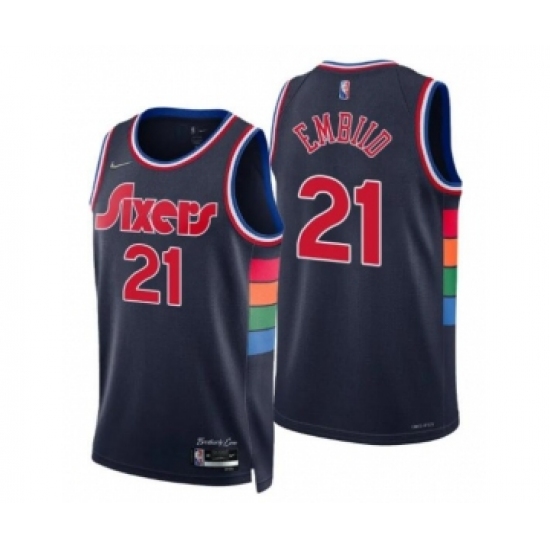 >Men's Joel Embiid #21 Philadelphia 76ers 2021-22 City Navy Jersey
