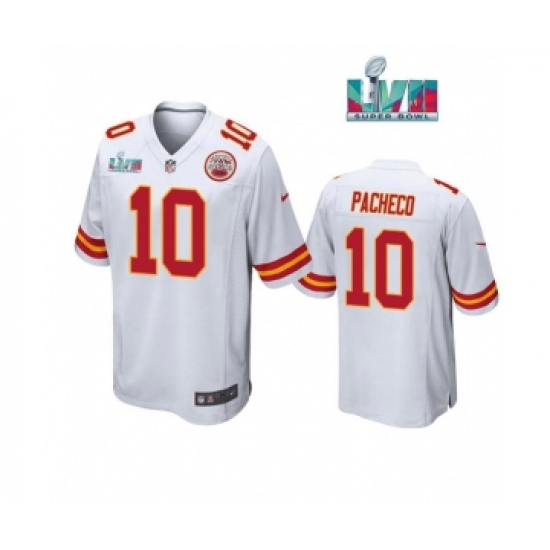 Men’s Kansas City Chiefs #10 Isaih Pacheco White Super Bowl LVII Patch Stitched Game Jersey