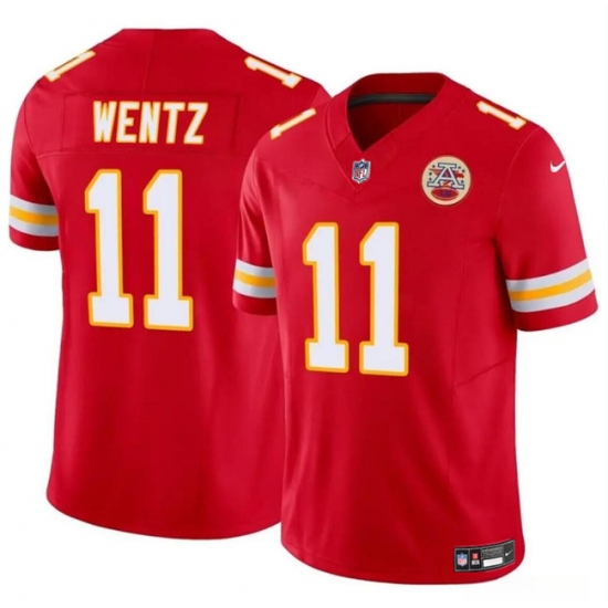 >Men’s Kansas City Chiefs #11 Carson Wentz Red 2023 F.U.S.E Vapor Untouchable Limited Football Stitched Jersey