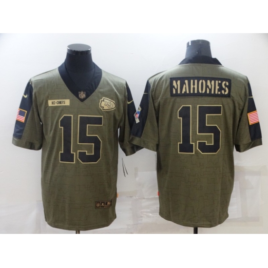 >Men's Kansas City Chiefs #15 Patrick Mahomes Nike Olive 2021 Salute To Service Limited Player Jersey