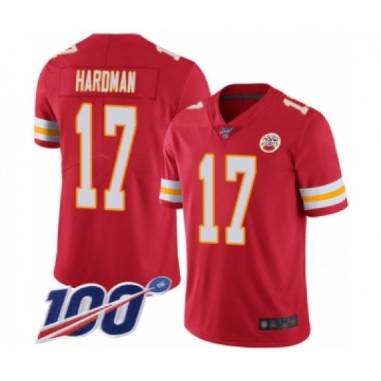 Men's Kansas City Chiefs #17 Mecole Hardman Red Team Color Vapor Untouchable Limited Player 100th Season Football Jersey