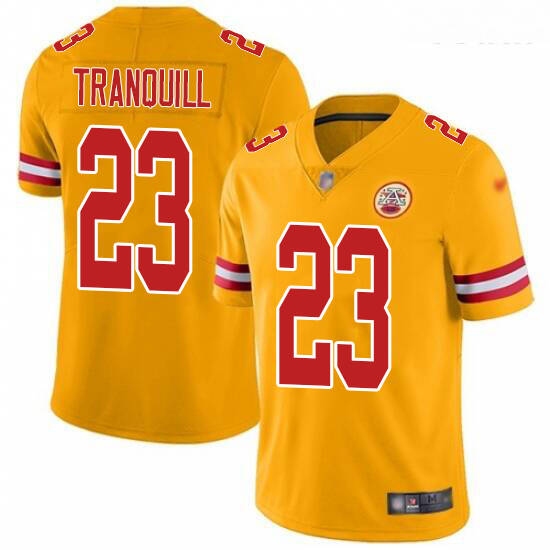 >Men's Kansas City Chiefs #23 Drue Tranquill Nike Yellow Limited Stitched Jersey