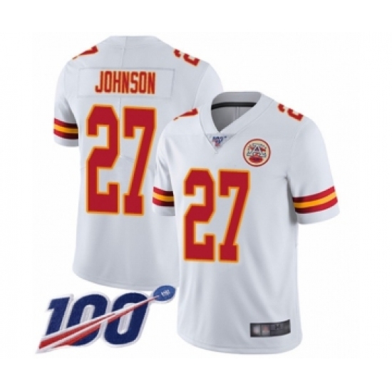 Men's Kansas City Chiefs #27 Larry Johnson White Vapor Untouchable Limited Player 100th Season Football Jersey