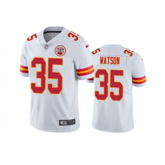 >Men's Kansas City Chiefs #35 Jaylen Watson White Vapor Untouchable Limited Stitched Football Jersey