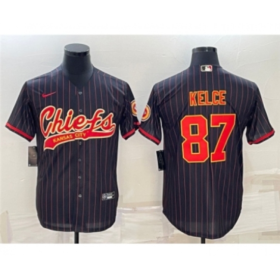 Men's Kansas City Chiefs #87 Travis Kelce Black With Patch Cool Base Stitched Baseball Jersey