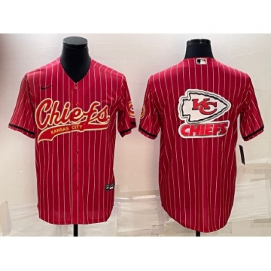 >Men's Kansas City Chiefs Red Team Big Logo With Patch Cool Base Stitched Baseball Jersey