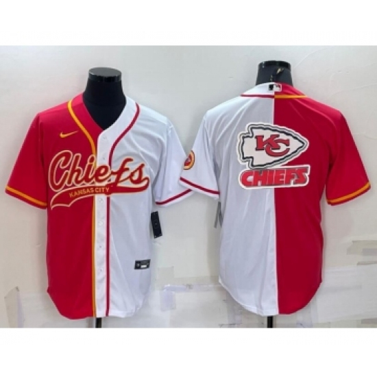 Men's Kansas City Chiefs Red White Team Big Logo With Patch Cool Base Stitched Baseball Jersey