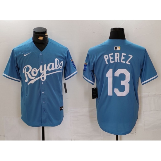 Men's Kansas City Royals #13 Salvador Perez Light Blue Cool Base Stitched Jersey