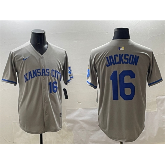 Men's Kansas City Royals #16 Bo Jackson Gray 2024 Away Limited Stitched Baseball Jersey