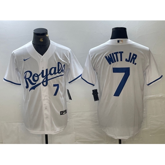 Men's Kansas City Royals #7 Bobby Witt Jr Number White Cool Base Stitched MLB Jersey