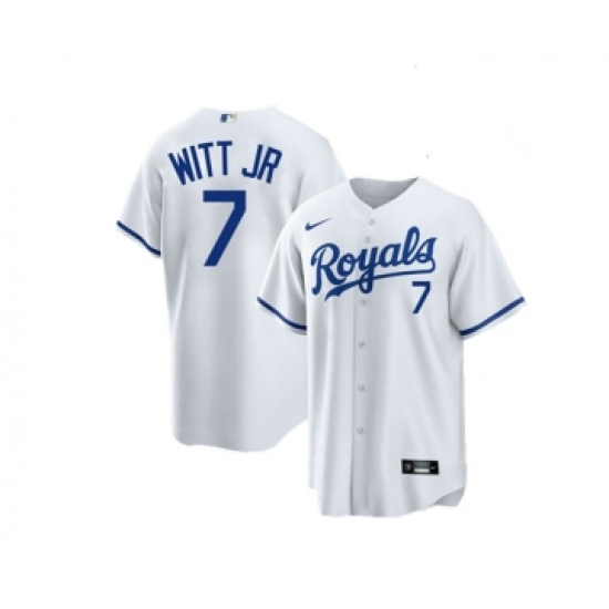Men's Kansas City Royals #7 Bobby Witt Jr. White Cool Base Stitched Jersey