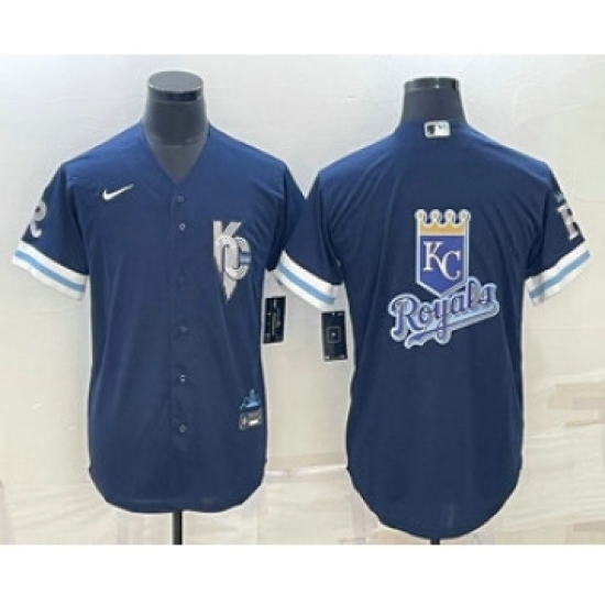 >Men's Kansas City Royals Big Logo 2022 Navy Blue City Connect Cool Base Stitched Jersey