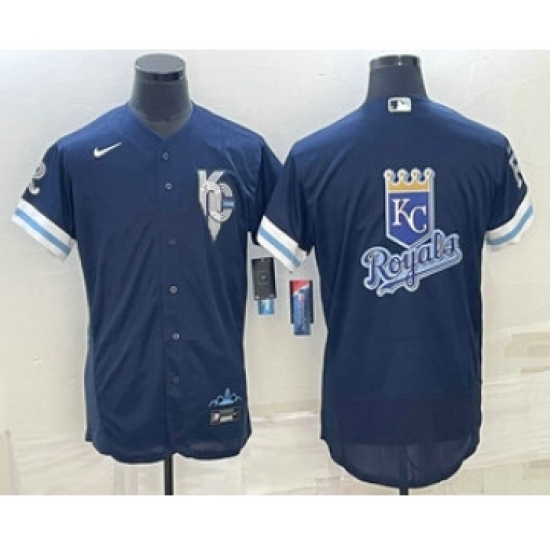 Men's Kansas City Royals Big Logo 2022 Navy Blue City Connect Flex Base Stitched Jerseys