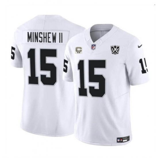 >Men's Las Vegas Raiders #15 Gardner Minshew II White 2024 F.U.S.E 65th Anniversary Vapor Stitched Football Jersey