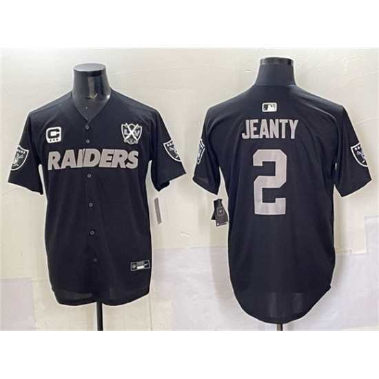 Men's Las Vegas Raiders #2 Ashton Jeanty Black With Nevada Silver Stat And 65th Anniversary 3-Star C Stitched Baseball Jersey
