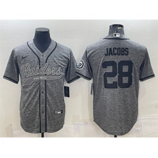 Men's Las Vegas Raiders #28 Josh Jacobs Gray With Patch Cool Base Stitched Baseball Jersey