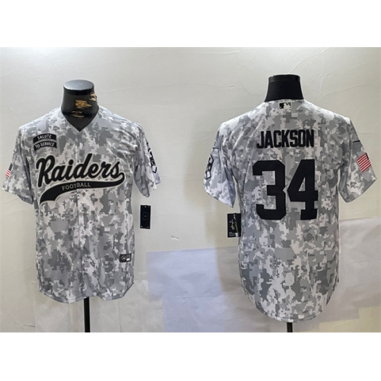 Men's Las Vegas Raiders #34 Bo Jackson 2024 Arctic Camo Salute To Service Stitched Baseball Jersey