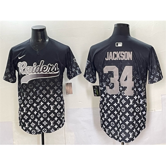 Men's Las Vegas Raiders #34 Bo Jackson Black Limited Stitched Baseball Jersey