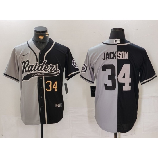 Men's Las Vegas Raiders #34 Bo Jackson Number Grey Black Split Cool Base Stitched Baseball Jersey