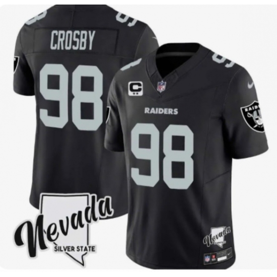 >Men's Las Vegas Raiders #98 Maxx Crosby Black 2024 F.U.S.E With Nevada Silver Stat And 3-Star C Stitched Football Jersey