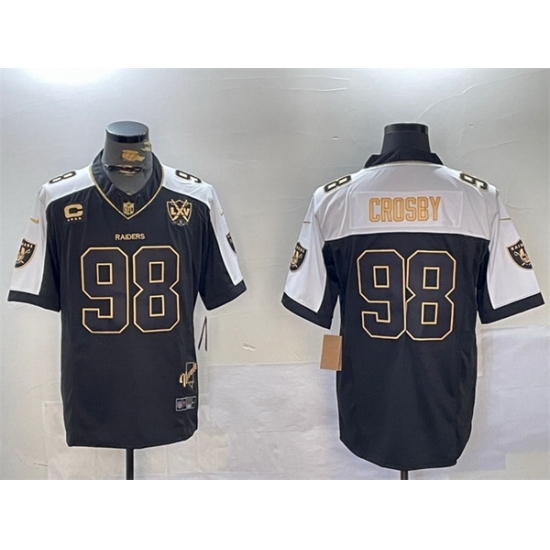 Men's Las Vegas Raiders #98 Maxx Crosby Black Gold F U S E With Nevada Silver Stat And 65th Anniversary 4 Star C Limited Stitched Football
