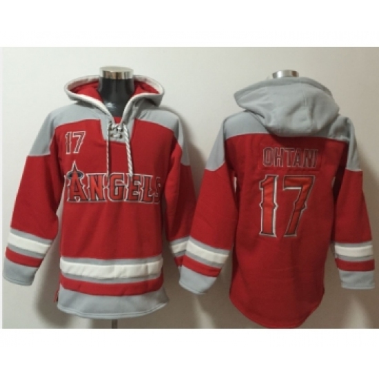 Men's Los Angeles Angels #17 Shohei Ohtani Red Ageless Must Have Lace Up Pullover Hoodie