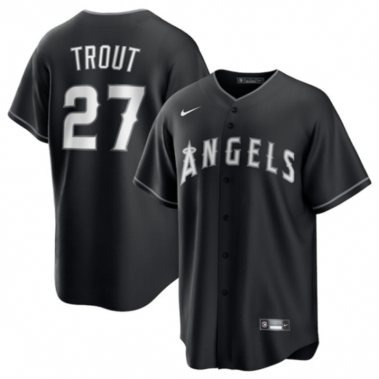 >Men's Los Angeles Angels #27 Mike Trout Black Lights Out Limited Stitched Baseball Jersey