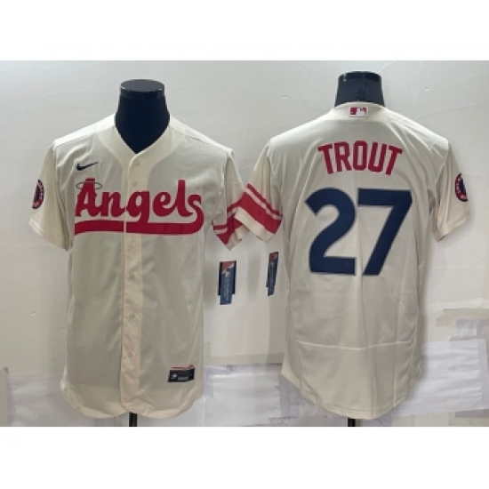 >Men's Los Angeles Angels #27 Mike Trout Cream 2022 City Connect Flex Base Stitched Jersey