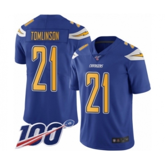 >Men's Los Angeles Chargers #21 LaDainian Tomlinson Limited Electric Blue Rush Vapor Untouchable 100th Season Football Jersey