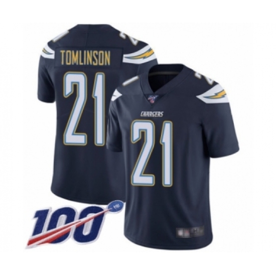 >Men's Los Angeles Chargers #21 LaDainian Tomlinson Navy Blue Team Color Vapor Untouchable Limited Player 100th Season Football Jersey