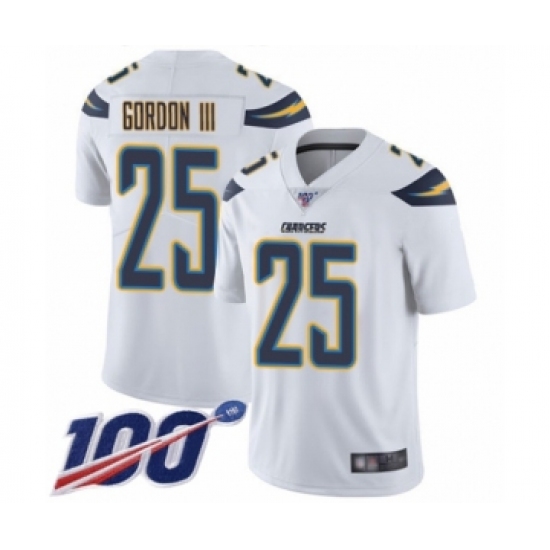 >Men's Los Angeles Chargers #25 Melvin Gordon White Vapor Untouchable Limited Player 100th Season Football Jersey