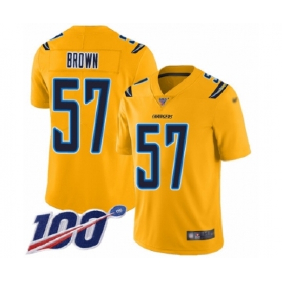 Men's Los Angeles Chargers #57 Jatavis Brown Limited Gold Inverted Legend 100th Season Football Jersey