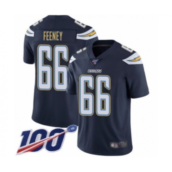 >Men's Los Angeles Chargers #66 Dan Feeney Navy Blue Team Color Vapor Untouchable Limited Player 100th Season Football Jersey