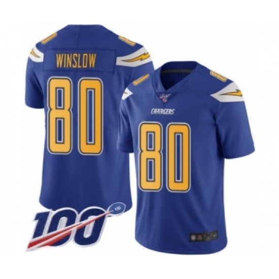 >Men's Los Angeles Chargers #80 Kellen Winslow Limited Electric Blue Rush Vapor Untouchable 100th Season Football Jersey