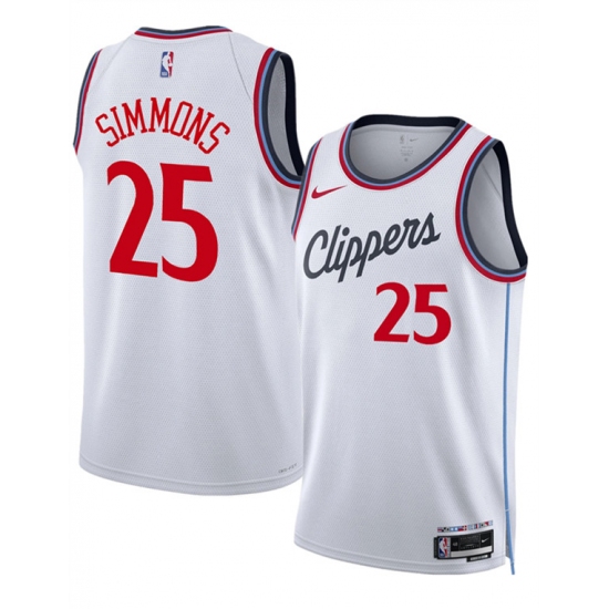 >Men's Los Angeles Clippers #25 Ben Simmons White 2024-25 Stitched Jersey
