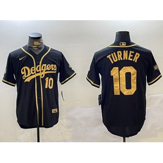 Men's Los Angeles Dodgers #10 Justin Turner Black Cool Base Stitched MLB Jersey