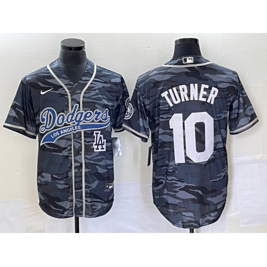 Men's Los Angeles Dodgers #10 Justin Turner Number Grey Camo Cool Base Stitched Baseball Jersey