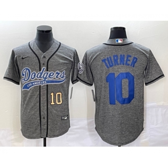 Men's Los Angeles Dodgers #10 Justin Turner Grey Gridiron Cool Base Stitched Baseball Jersey