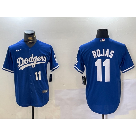>Men's Los Angeles Dodgers #11 Miguel Rojas Number Blue Cool Base Stitched Jerseys