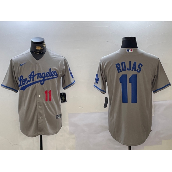 >Men's Los Angeles Dodgers #11 Miguel Rojas Number Grey With los Cool Base Stitched Jersey