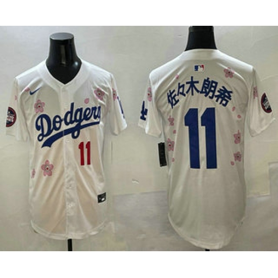 >Men's Los Angeles Dodgers #11 Roki Sasaki White Japanese 2025 Tokyo Series Limited Jersey