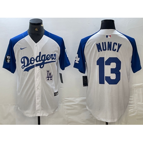 >Men's Los Angeles Dodgers #13 Max Muncy White Blue Fashion Stitched Cool Base Limited Jersey