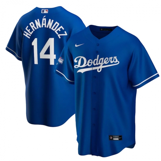 >Men's Los Angeles Dodgers #14 Enrique Hernández Nike Royal 2020 World Series Champions Alternate Replica Player Jersey