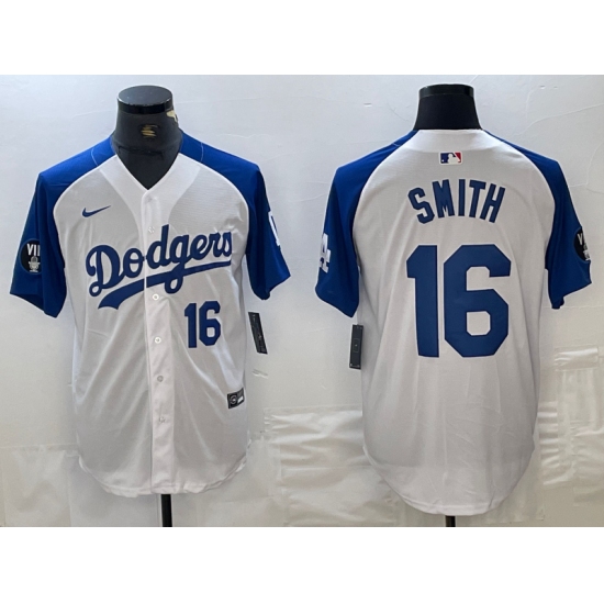 Men's Los Angeles Dodgers #16 Will Smith White Blue Fashion Stitched Cool Base Limited Jerseys
