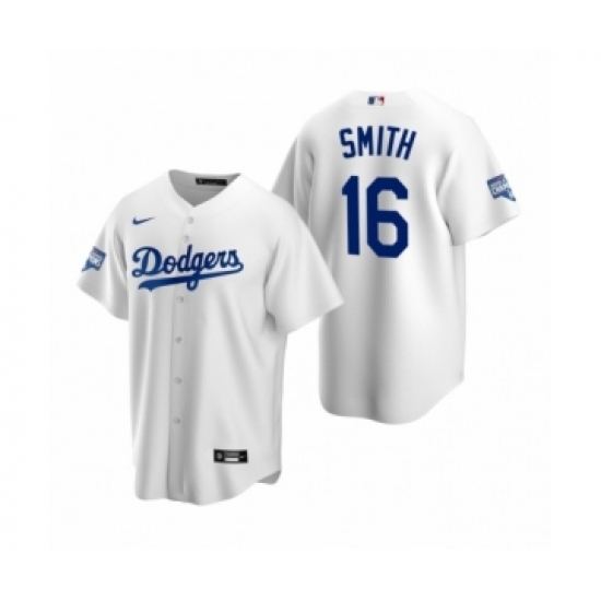 >Men's Los Angeles Dodgers #16 Will Smith White 2020 World Series Champions Replica Jersey