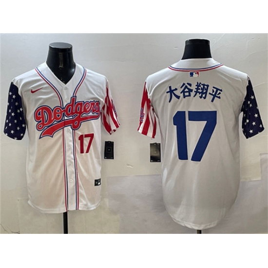>Men's Los Angeles Dodgers #17 大谷翔平 White Limited Stitched Baseball Jersey