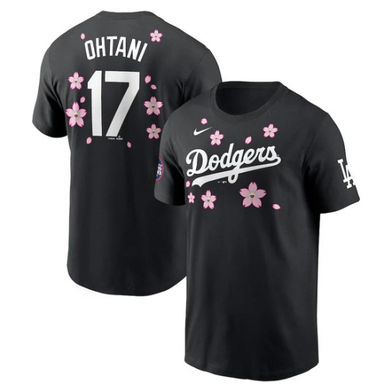 Men's Los Angeles Dodgers #17 Shohei Ohtani Black 2025 Tokyo Series Name & Number T-Shirt